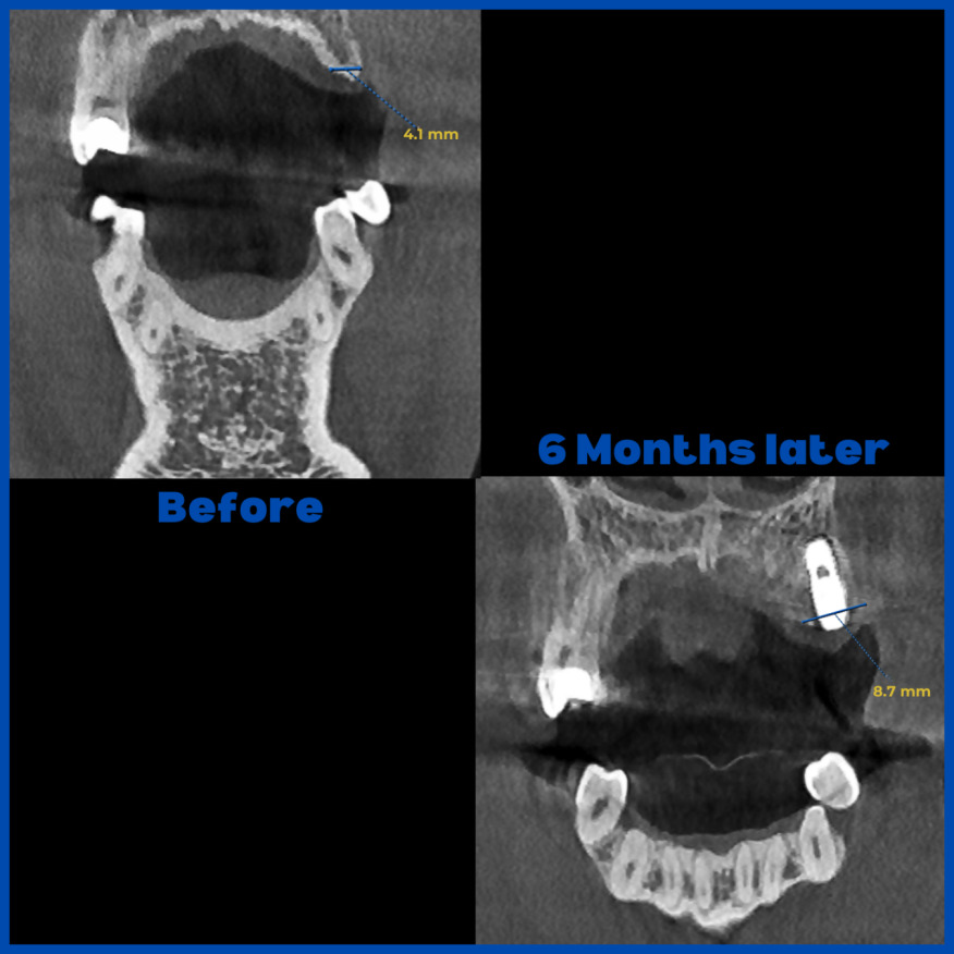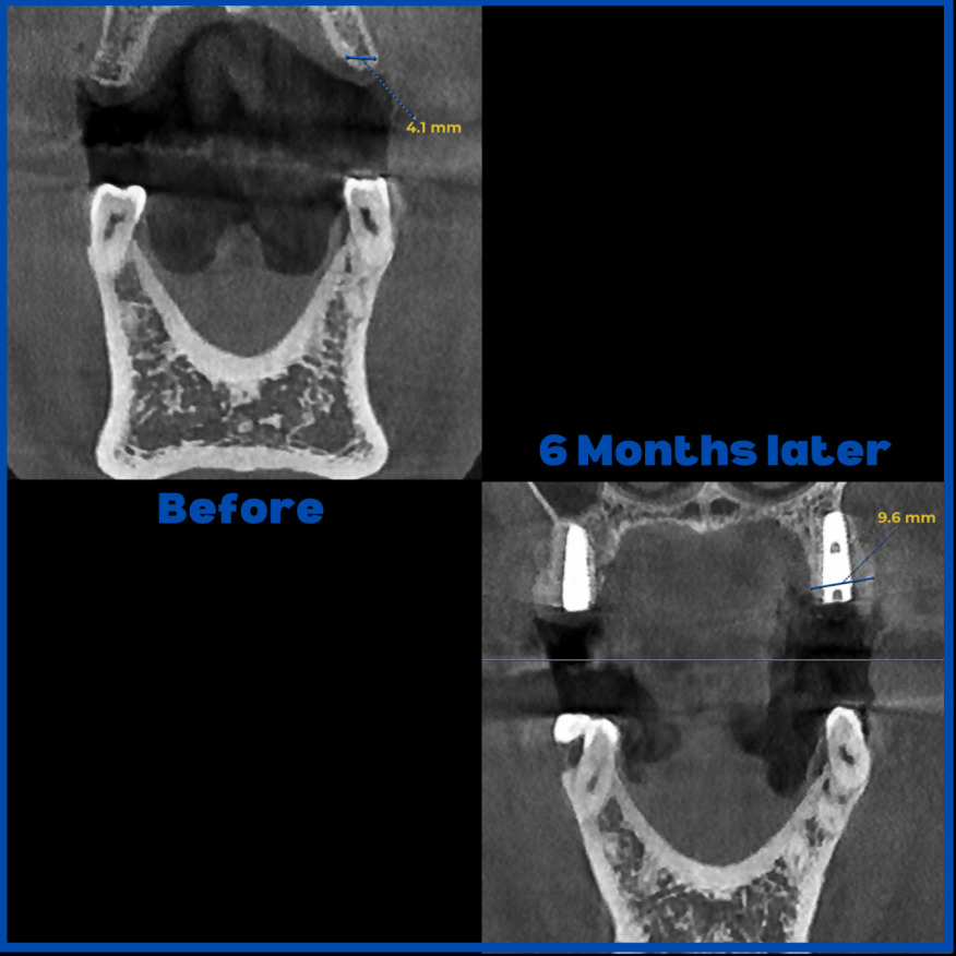 Ana sayfa > Klinik Vakalar > İnce kemik varlığında biorejenerasyon destekli kemik tozu uygulamamız ile yeni kemik oluşumu